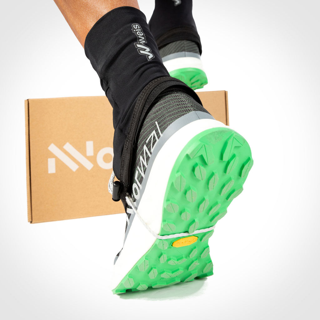 1. Antes de calzarte: Para mayor comodidad, coloca la polaina sobre tu pie antes de ponerte la zapatilla.