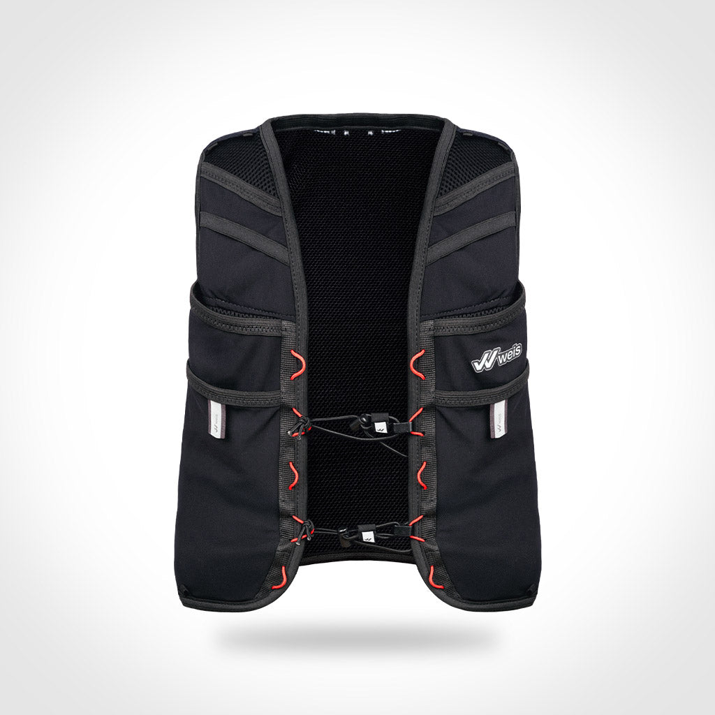 Mantiene la cantidad de bolsillos y compartimentos de su versión anterior, pero ahora ofrece mayor practicidad y accesibilidad al duplicar la capacidad frontal: incorpora dos nuevos bolsillos delanteros diseñados para llevar comida, soft flasks adicionales, el móvil o cualquier elemento esencial para entrenamientos o competiciones.