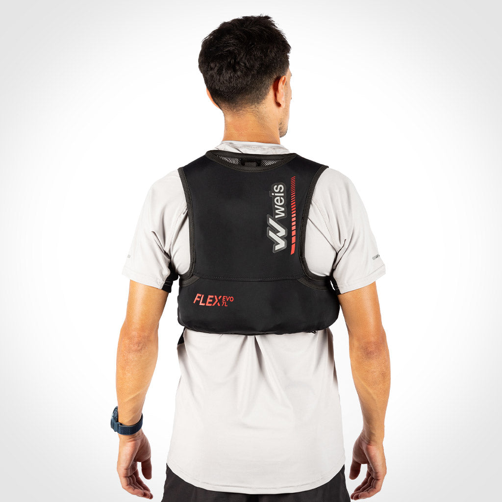 Con un diseño minimalista y un peso de solo 200 gramos, FLEX EVO 7 L es el chaleco ideal para quienes se inician en el trail running o para corredores de asfalto que buscan mayor comodidad en distancias de hasta 70 kilómetros.
