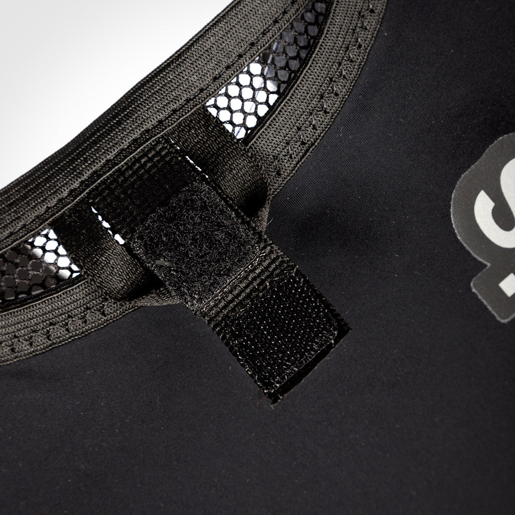 - 1 trasero con velcro de sujeción para una bolsa de hidratación o para guardar material de mayor tamaño (con buen alcance de brazos accesible en carrera).