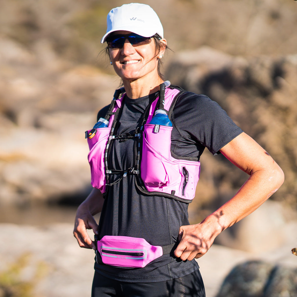 La riñonera SLIM combina ligereza, elasticidad y resistencia gracias al Spandex, para quienes buscan correr con el mínimo equipamiento y la máxima libertad de movimiento.