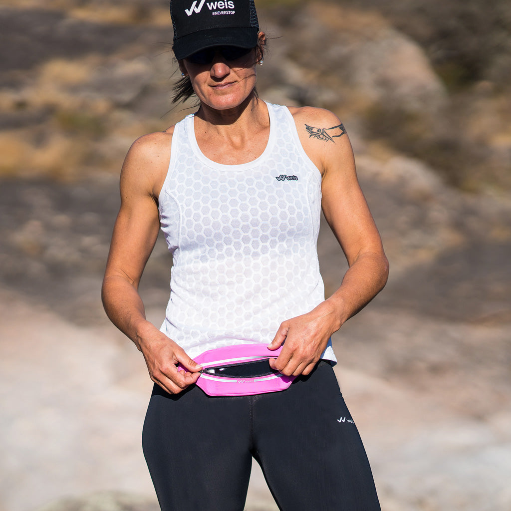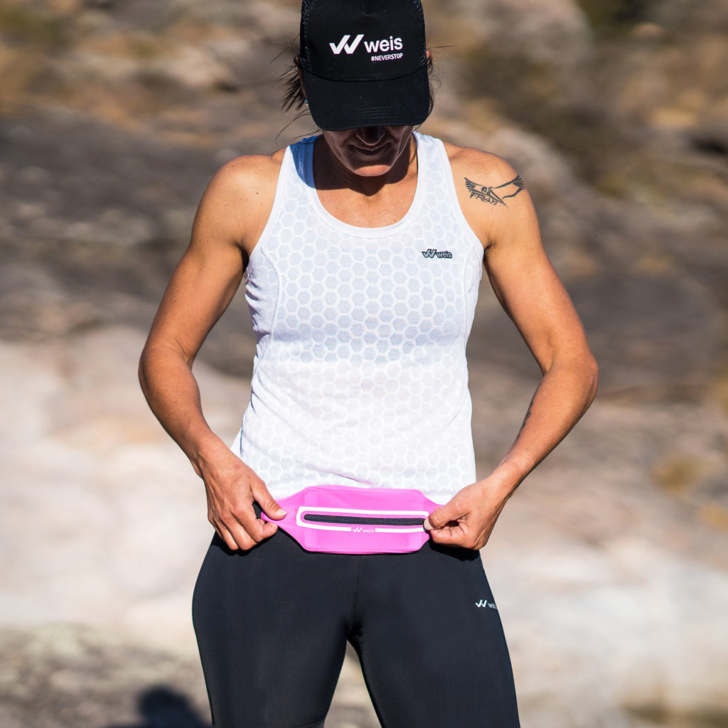 Ultrafina cuando está vacía, pero su bolsillo expandible con cremallera triplica la capacidad de carga sin notarse en el cuerpo. Su correa elástica regulable garantiza un ajuste perfecto a la cintura, reduciendo al máximo cualquier rebote.