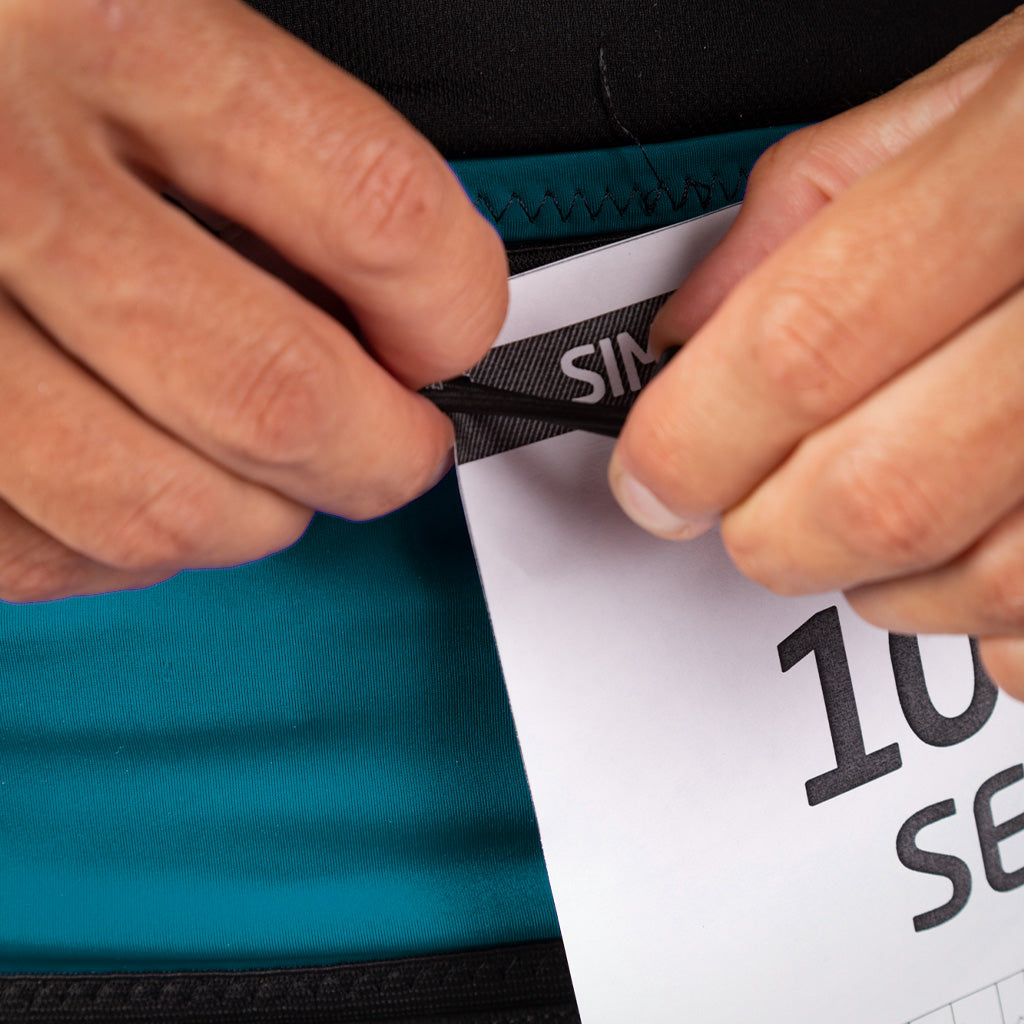 Vacía, apenas se nota puesta y no se deforma. Gracias a sus elásticos internos con goma antideslizante y al innovador sistema de ajuste regulable oculto, heredado de nuestros chalecos de hidratación, acompaña cada movimiento sin generar rebotes. Además, incorpora portadorsal con sistema de cuatro posiciones, lo que facilita el cambio de ropa durante una competición y elimina la necesidad de usar imperdibles.